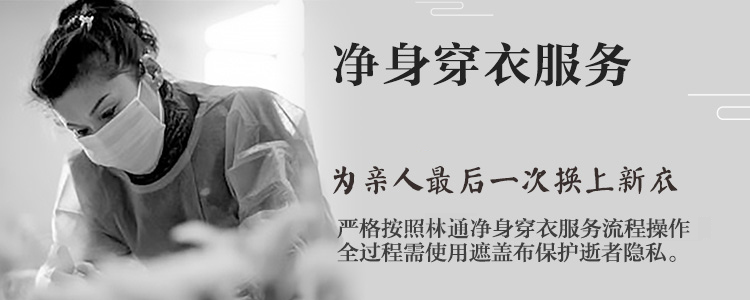 亲人离世后5小时内是最适宜的净身穿衣期。净身穿衣服务(含服务用品)。林通各项服务已标准化、流程化,定价合理,绝不加价!
